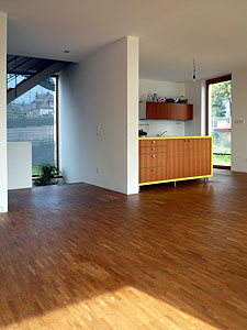 Es wird ein Passivhausstandard mit kontrollierter Wohnraumlüftung angestrebt. Eine thermische Solaranlage unterstützt die zentrale Wärme- und Warmwasserversorgung.